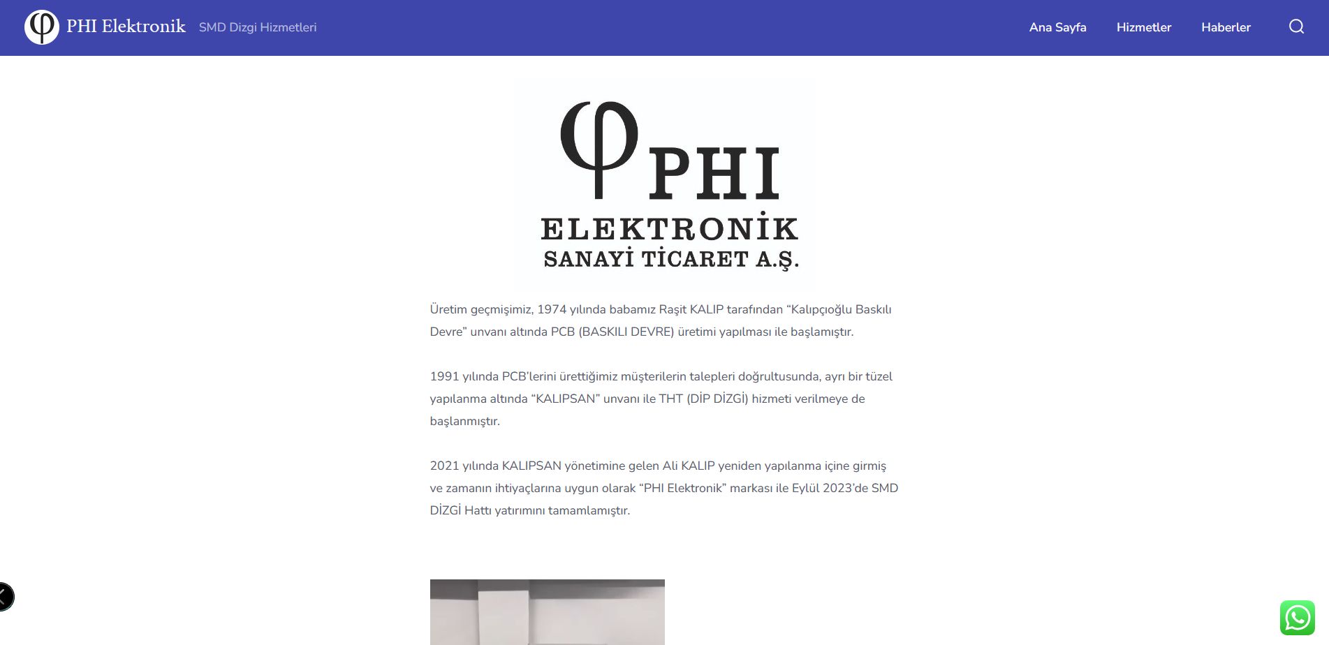 PHI Elektronik adına yapmış olduğumuz internet sitesi yayına başlamıştır. Kendilerine hayırlı olmasını dileriz.