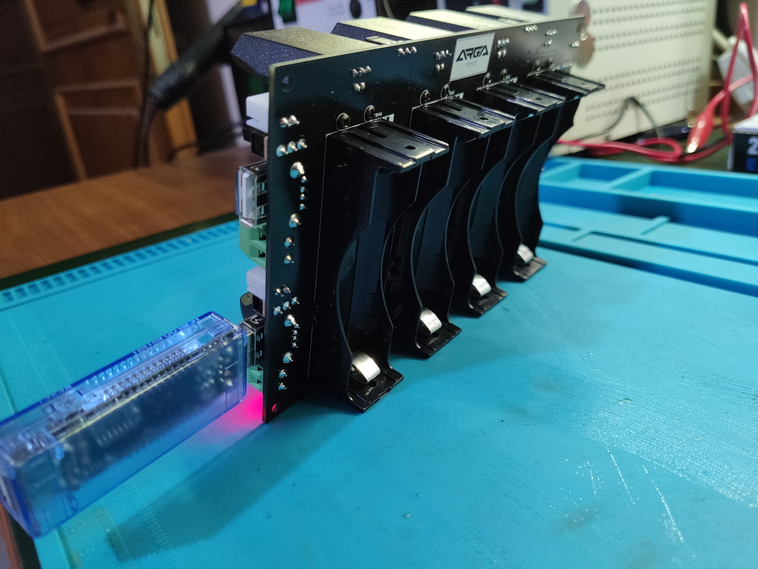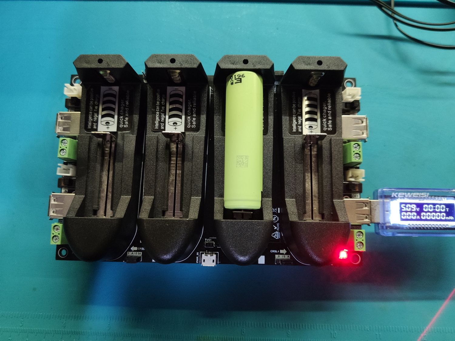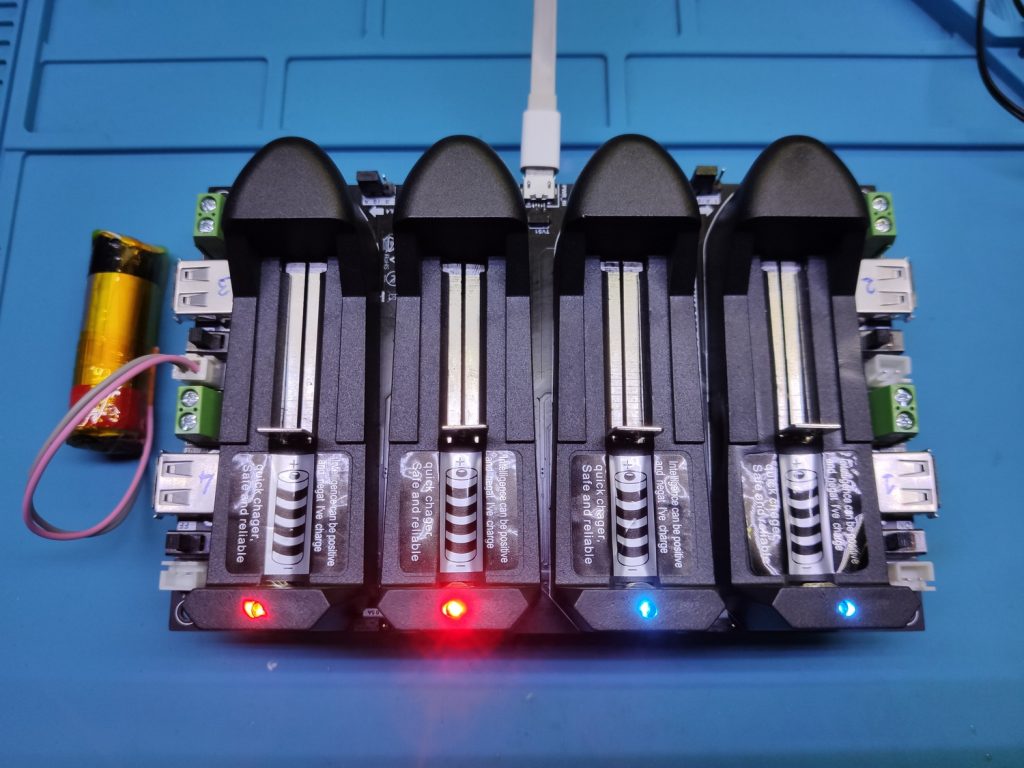 Hobi olarak yapılan bir devreydi. PCB'ci yazıları basarken biraz sorun yaşasa da çok şık durduğunu söylemek sanırım yanlış olmaz. 4 kanal bağımsız olarak çalışır ve 0,5 ya da 1,0A akım limiti ile şarj sağlarken, pilden boost ile 5VDC gerilim çıkışı almak da mümkündür.
